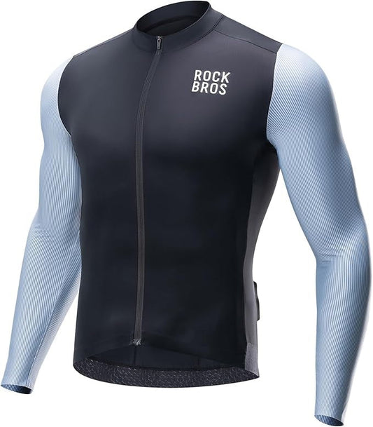 ROCKBROS Tricou pentru ciclism cu mânecă lungă Tricou pentru bărbați, respirabil, cu uscare rapidă, pentru ciclism, cu fermoar, cu 3 buzunare, tricou pentru bărbați, bicicletă de drum, MTB, mărime europeană