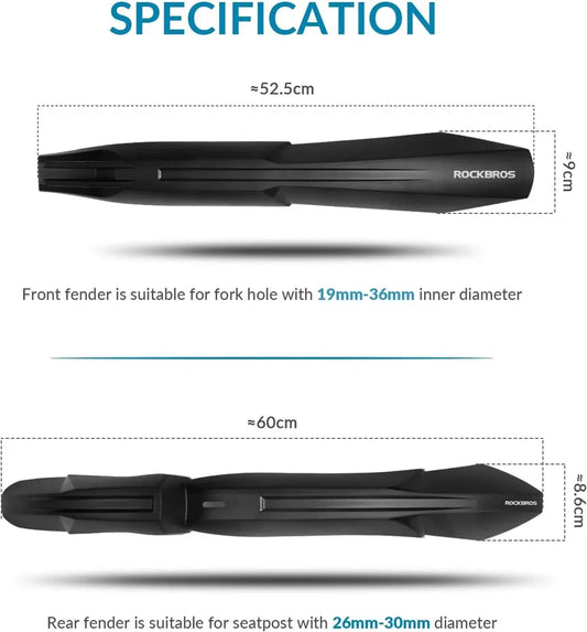 Set apărători de noroi pentru bicicletă ROCKBROS față + spate pentru MTB 22-24 inch